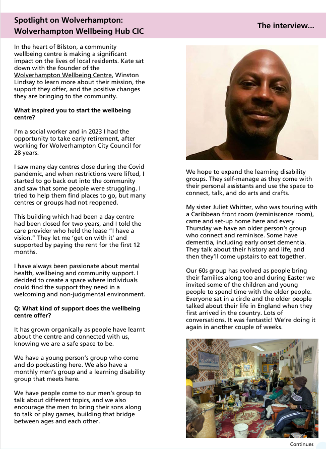 The attached documents offer an insightful look into the journey of the Wolverhampton Wellbeing Hub CIC and its founder’s commitment to supporting local wellbeing in Bilston and the wider Wolverhampton